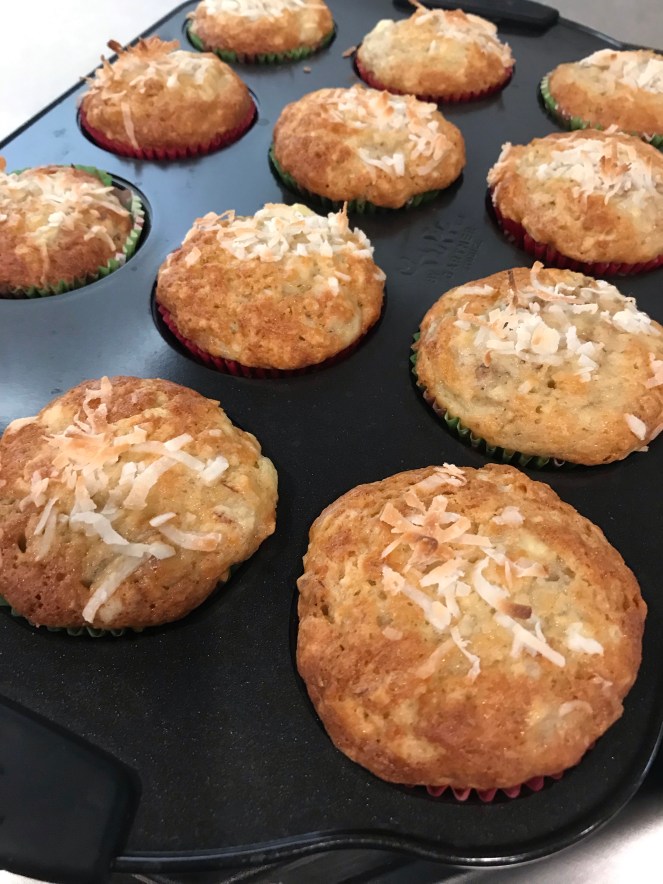 - 1 cup flaked sweetened coconut, divided (1/2 cup for batter and 1/2 cup for top of muffin)
