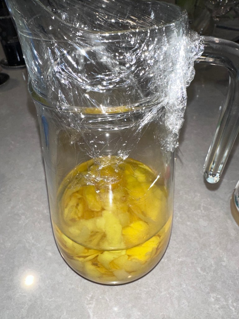 - Pour the vodka over the lemon peels and then cover with plastic wrap. Put in a cool place away from bright lights and be patient. Let the lemons and vodka steep for at least 4 days and up to a month. It will smell heavenly.