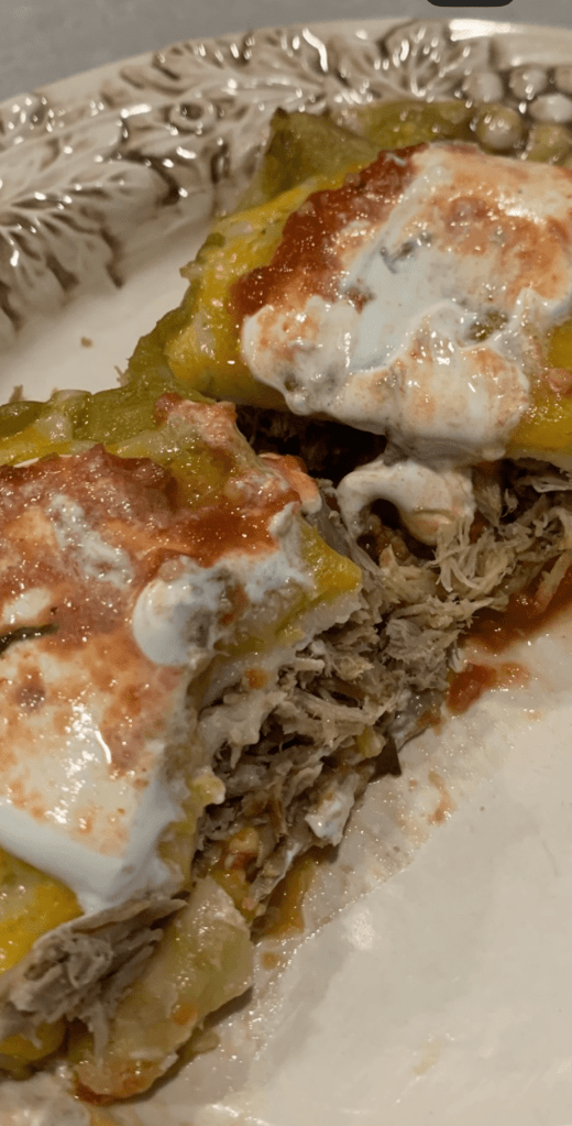 Truth be told, I have always loved red enchilada sauce. Green was never my favorite. UNTIL John’s brother made this now famous recipe at our house. It’s so easy and can be doubled to feed a crowd. It may be your new favorite make-ahead Mexican inspired dish.