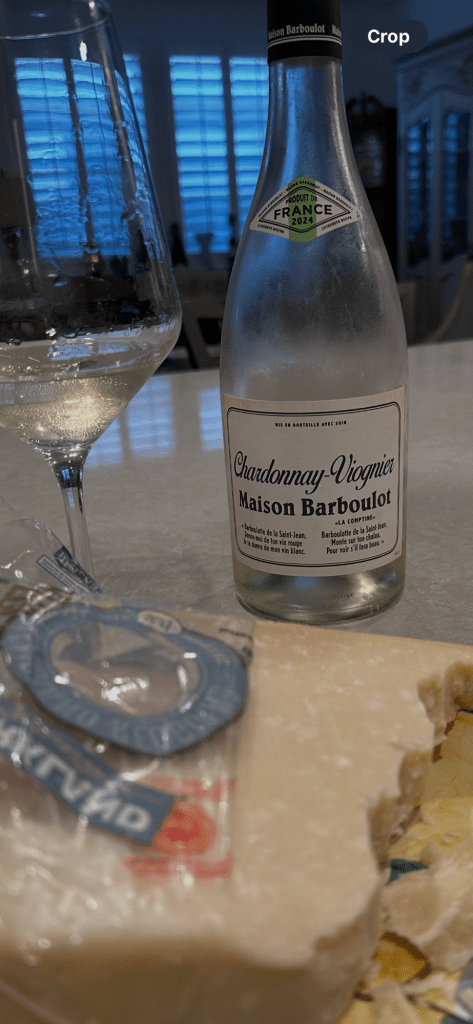 Viognier is known as a French grape varietal but also grows in California. It blends perfectly with Chardonnay. Which makes me grab a bottle or two for my favorite wine sips from Trader Joe’s.