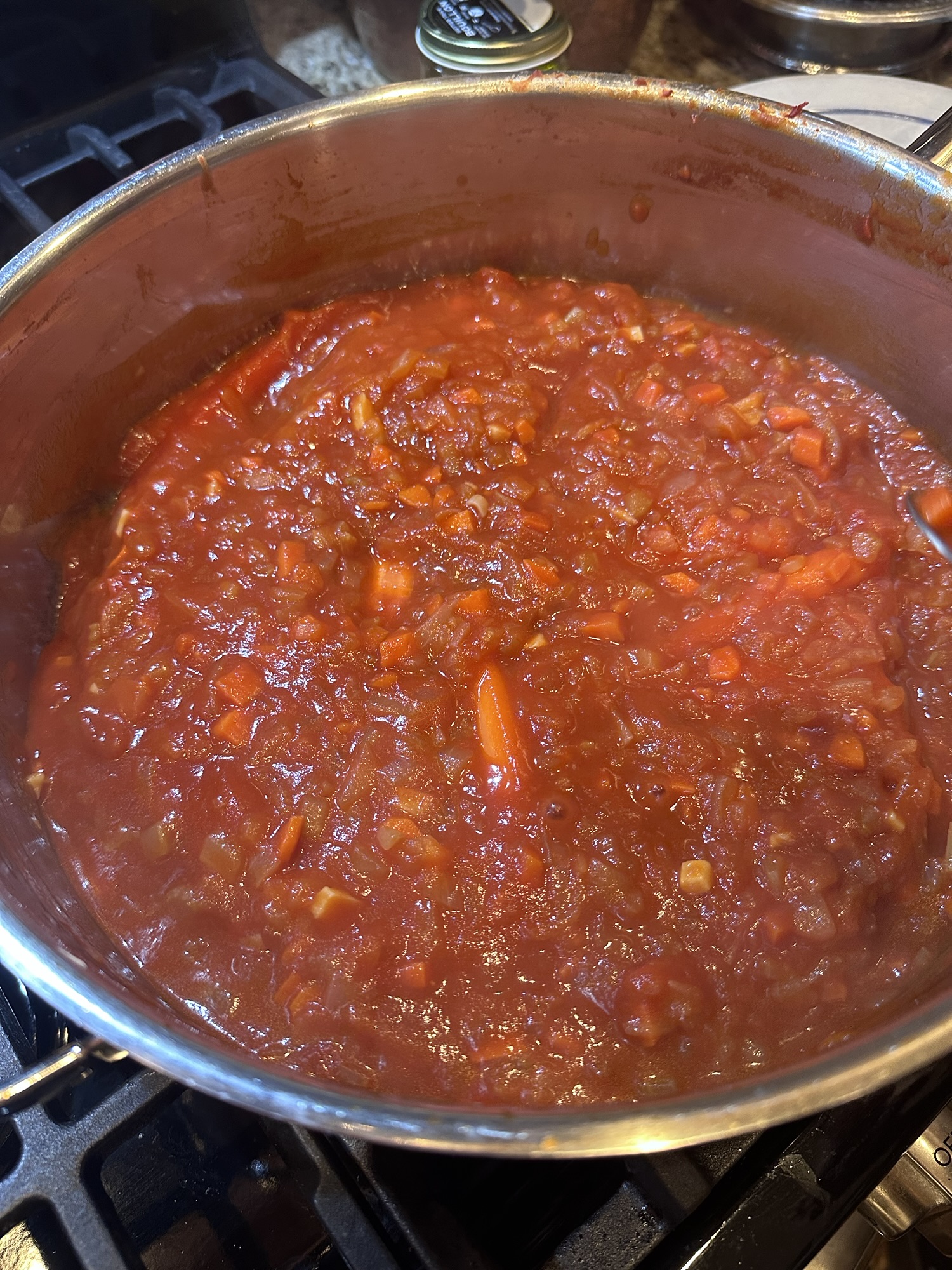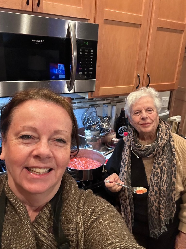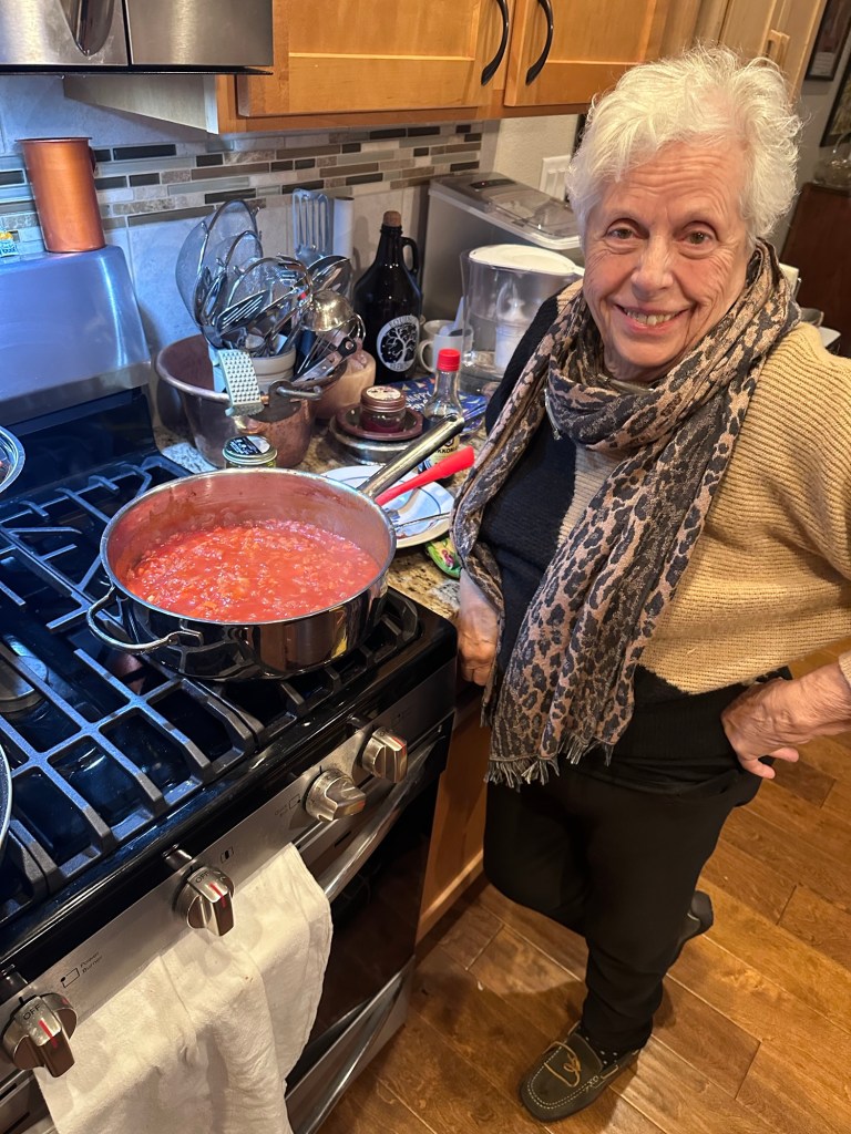Sauce is slowly simmering and mom is posing like the sassy Italian Diva that she is!