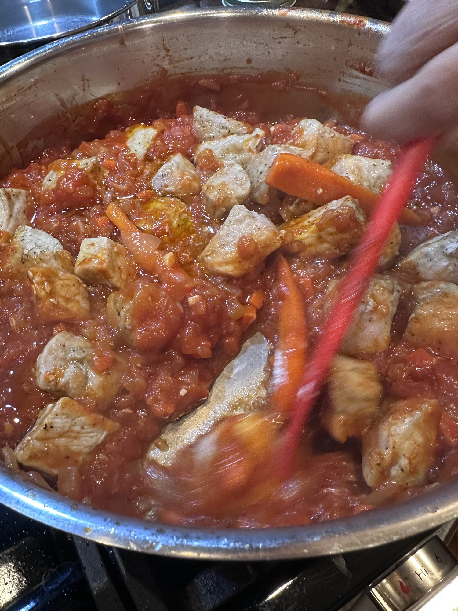 Tonight, pork and tomato sauce.